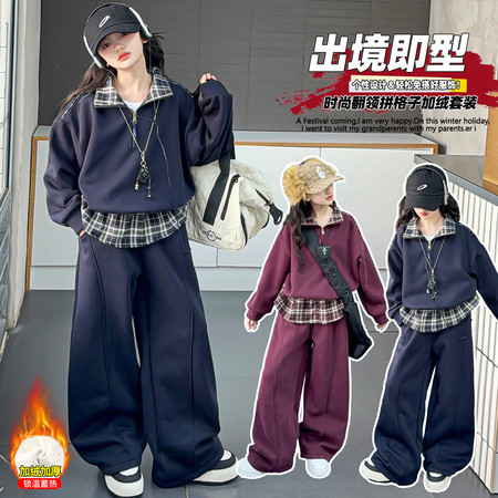 佳*2收藏“SD25915翻领拼格子加绒套装”